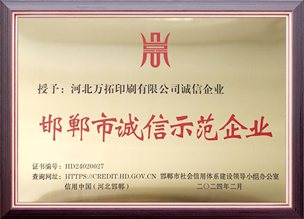 万拓印刷有限公司是由成立于1991年的河北省邯郸市盛隆彩印厂改制而来。35年来公司专注包装整体解决方案。产品主要包含精制礼品盒、彩盒、彩箱、木盒、标签、说明书等多种类型。服务于食品、烟酒、鲜果、护肤品、礼品等项目。作为您在包装领域的战略合作伙伴,万拓公司建立永续发展的品牌愿景,致立于公司长久经营生态的可持续。
